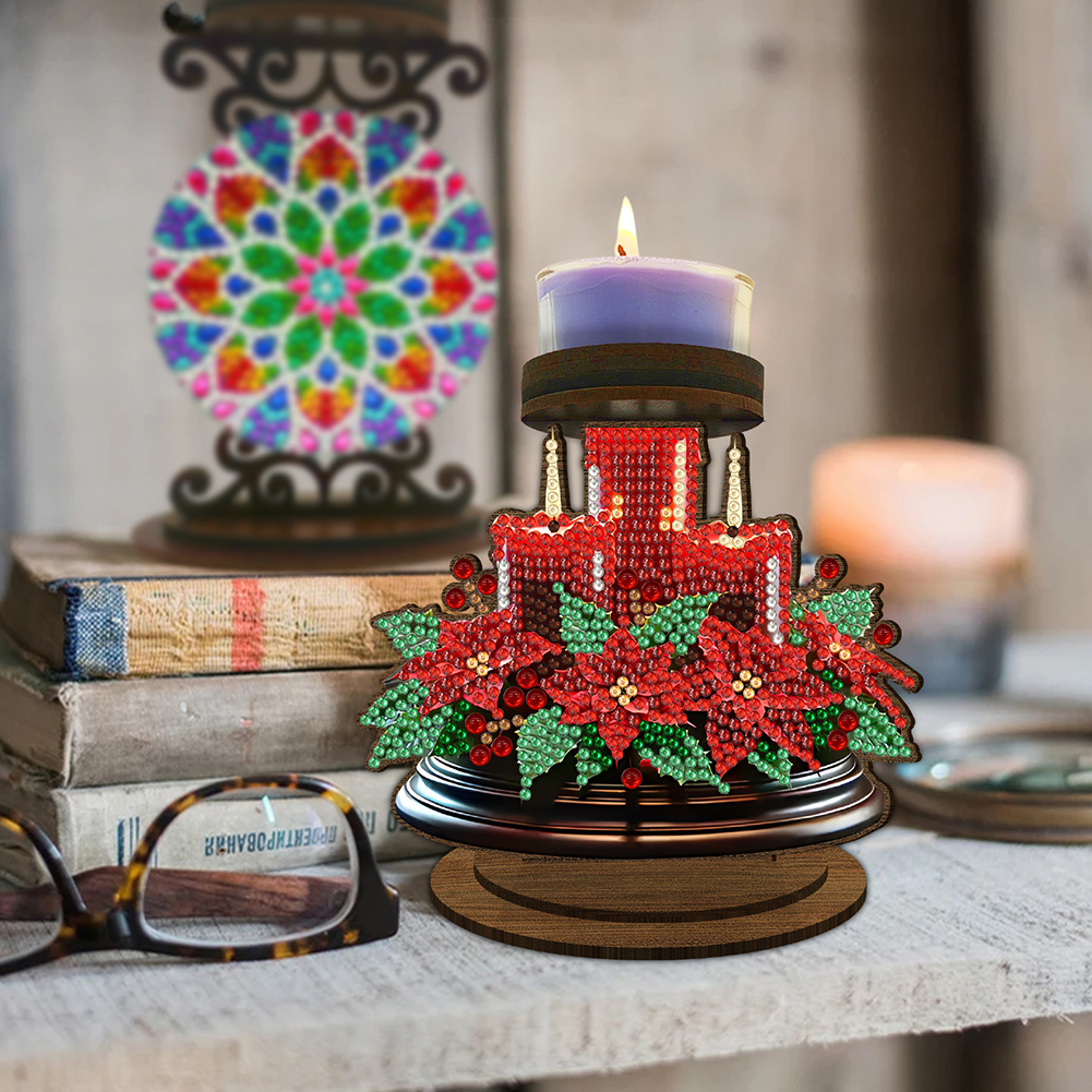 Wooden Beautiful Pattern Mosaic Rhinestone Drawing Candlestick Decor 5D DIY Diamond Painting Candlestick for Home Office