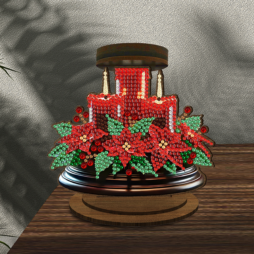 Wooden Red Flower Candle 5D DIY Diamond Painting Candle Holder Decor for Adults
