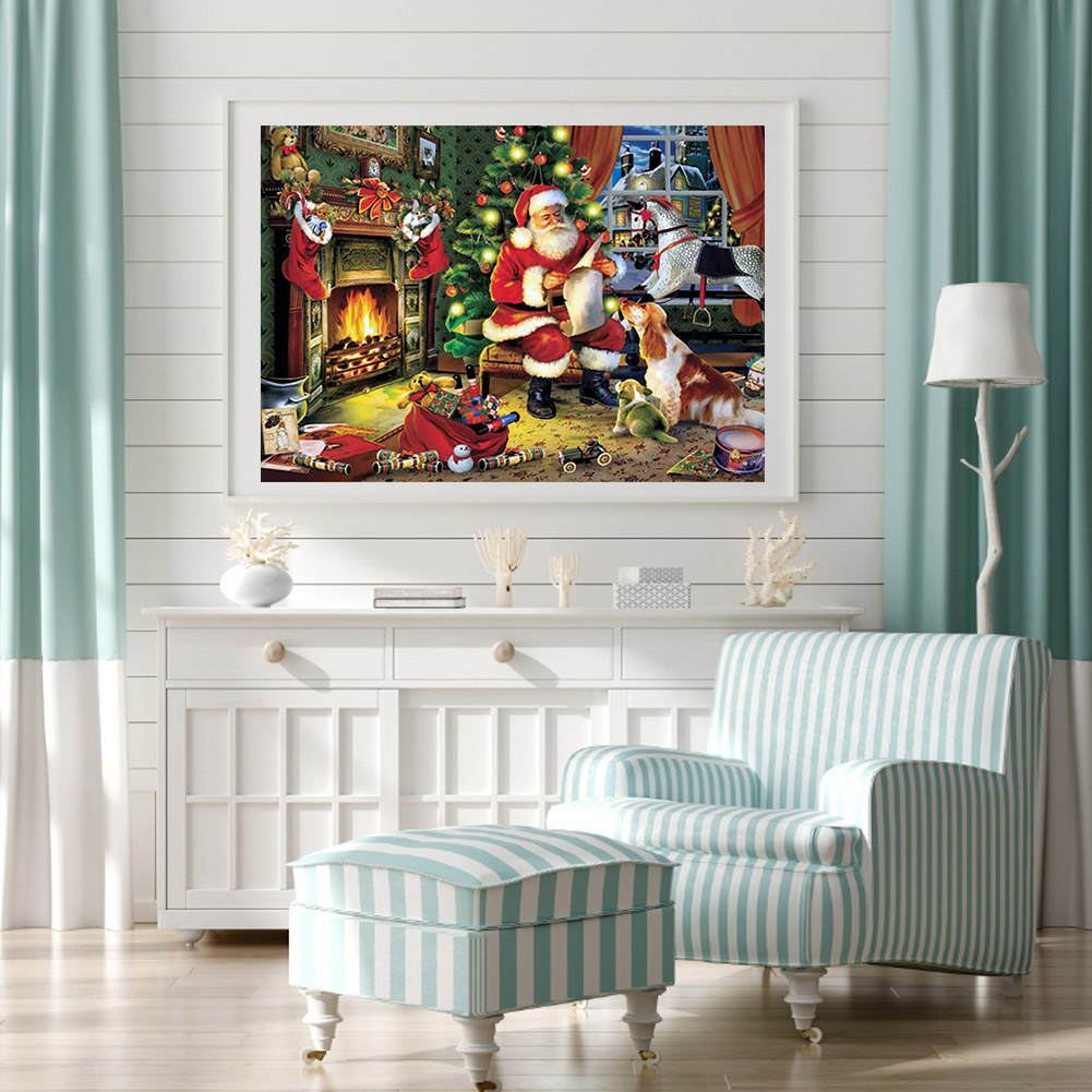 Full Embroidery Stamped Cross Stitch Kits Santa Claus Embroidery Sets DIY 3-Strand Cotton Thread 11CT Pre Printed Fabric Needlework Crafts Home Decoration