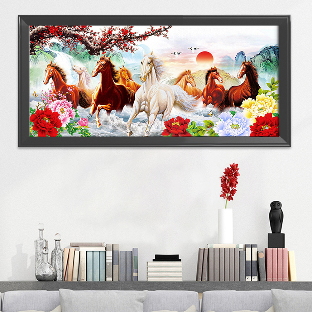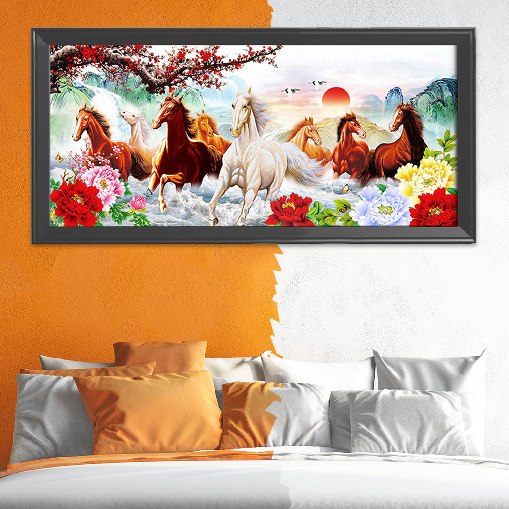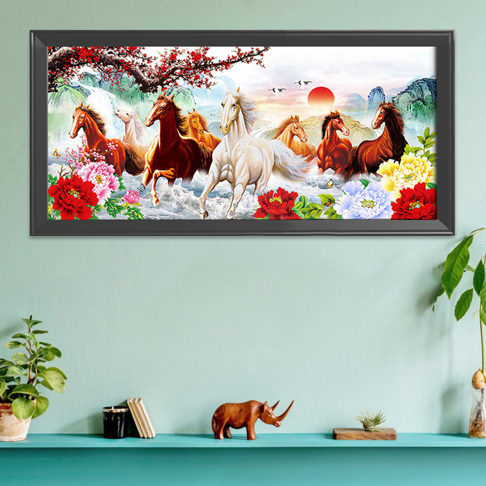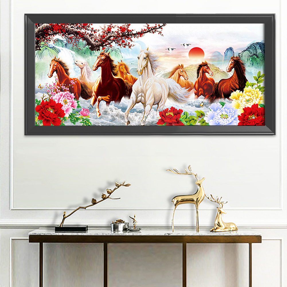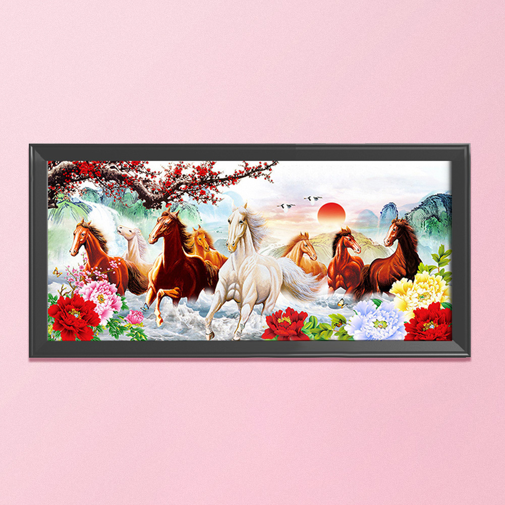 Canvas DIY Animals Running Horse Pattern Needlework Embroidery Set Printed Cotton Thread Landscape Cross Stitch Kit 11CT Handcraft Home Decor
