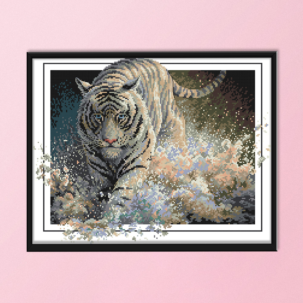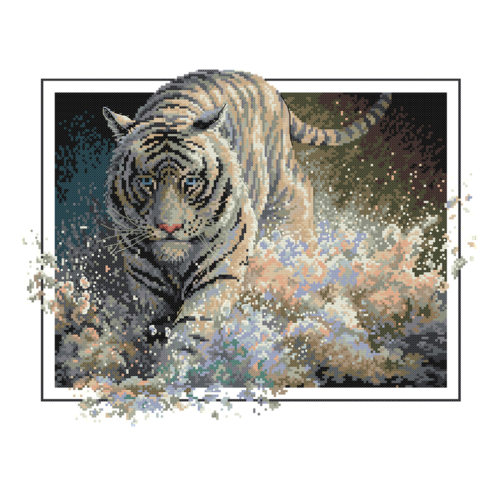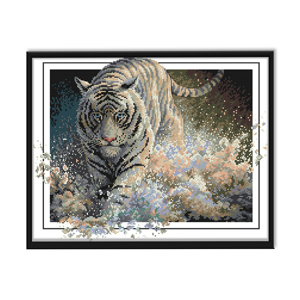 Animal Tiger Cross Stitch Kits 14CT Stamped Cotton Thread Embroidery Print Canvas Art Needlework Craft Home Decor Gift