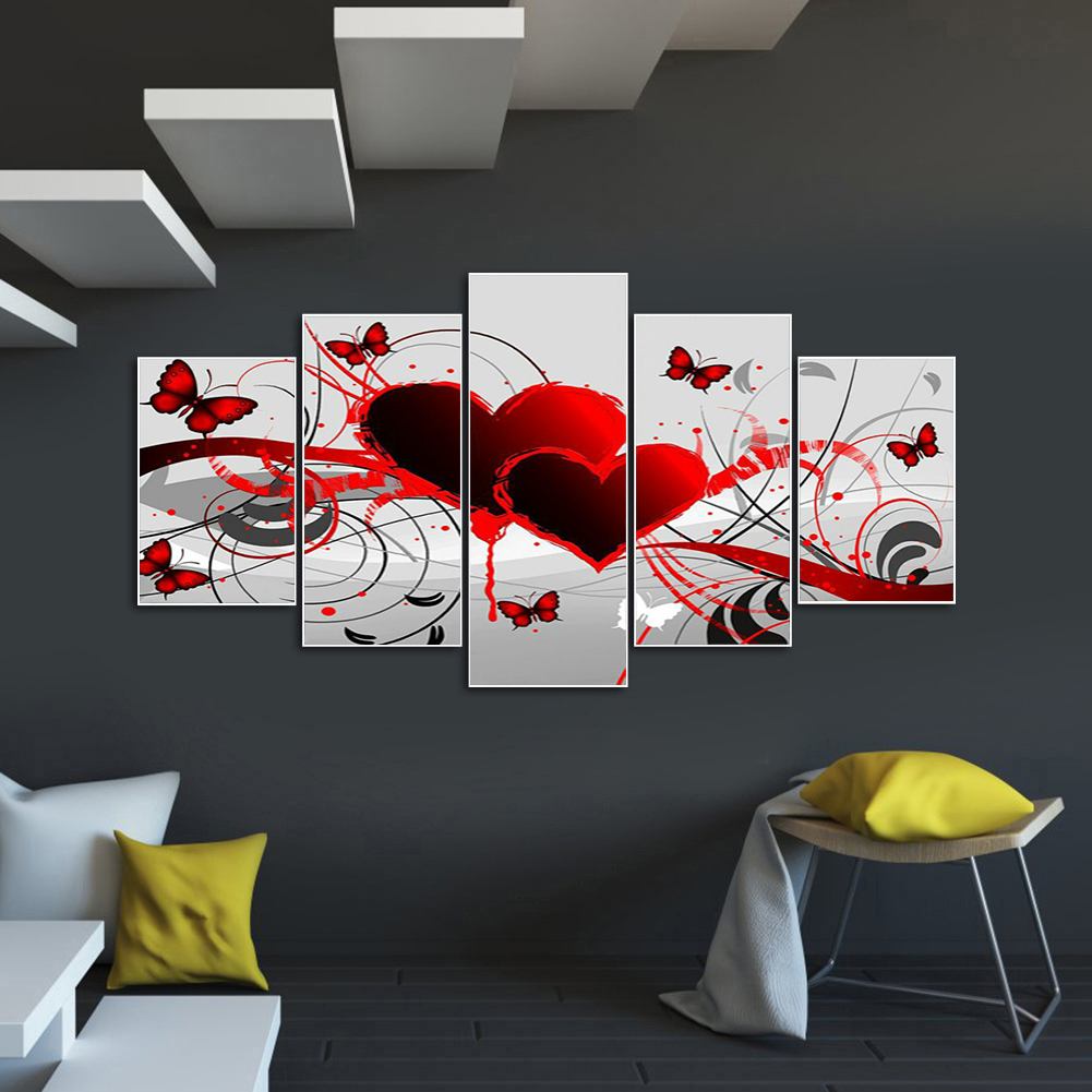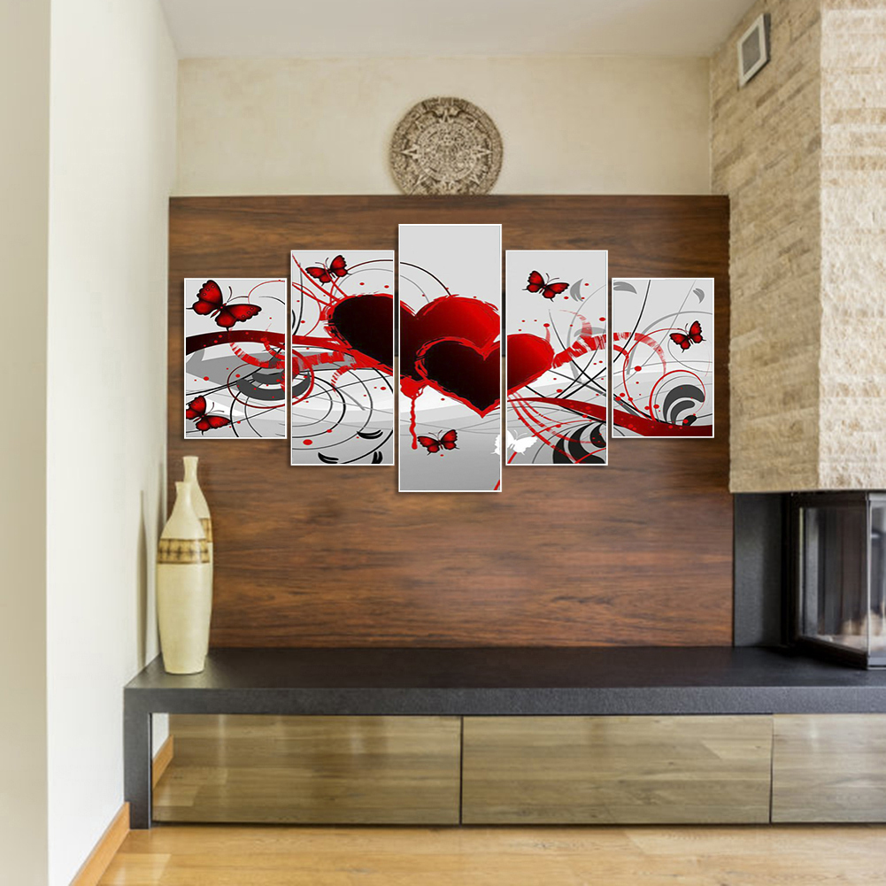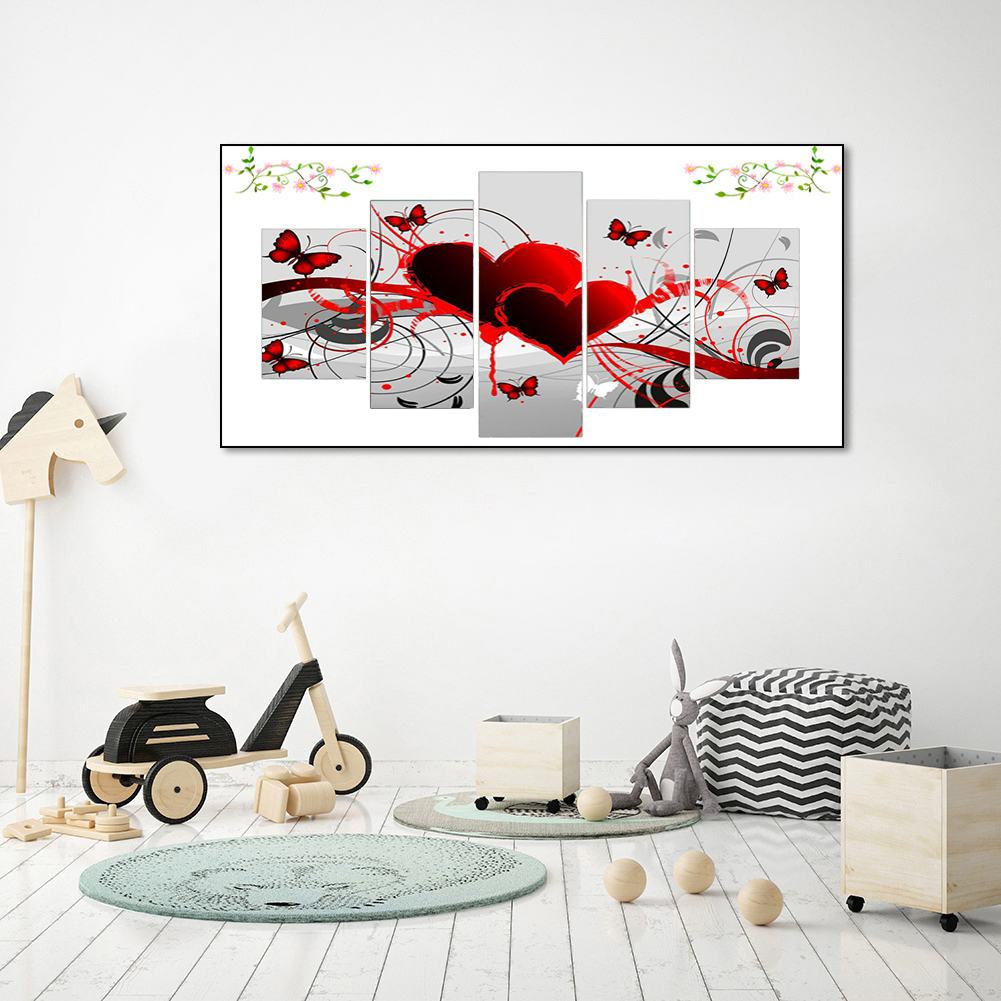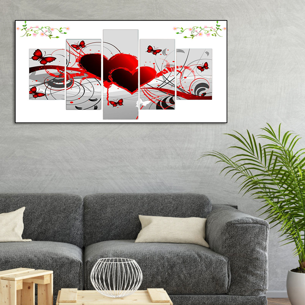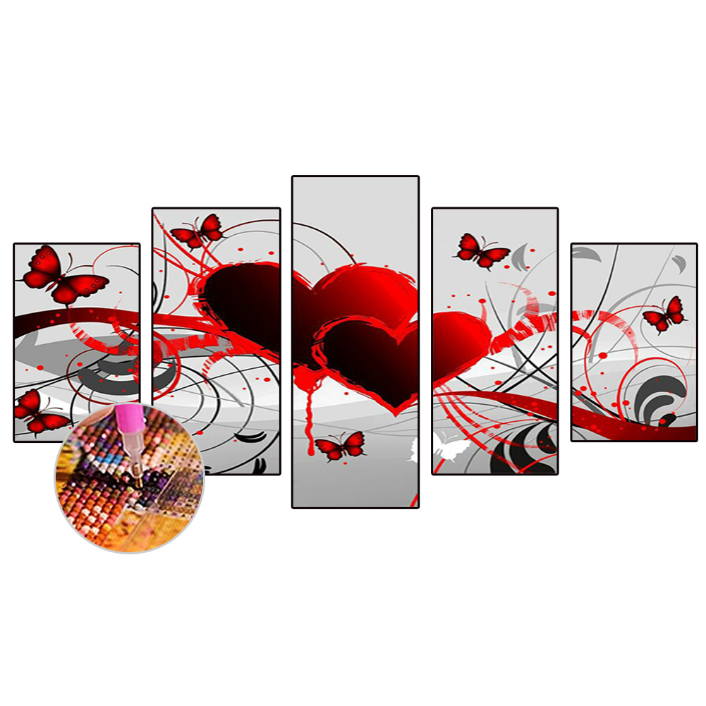 Diamond Painting - Full Round Drill - 5pcs Heart Butterfly(90*45cm)