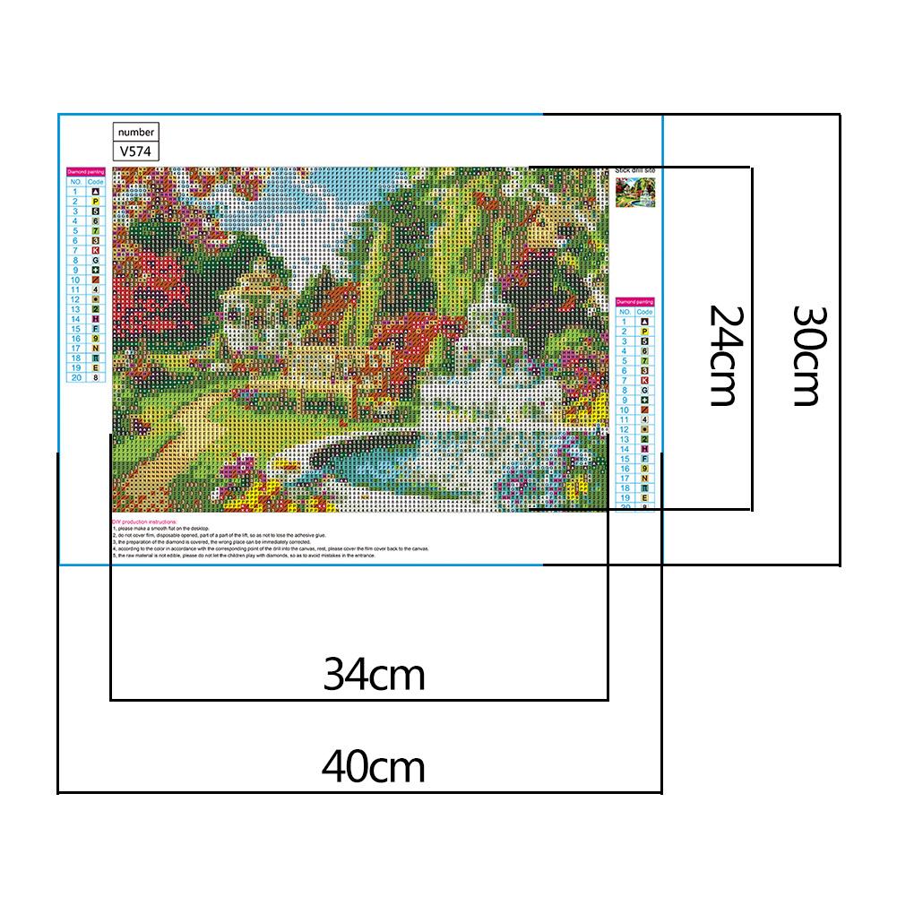 5D DIY Full Drill Round Diamond Painting Courtyard Cross Stitch Embroidery Mosaic Kit Home Decor Needlework