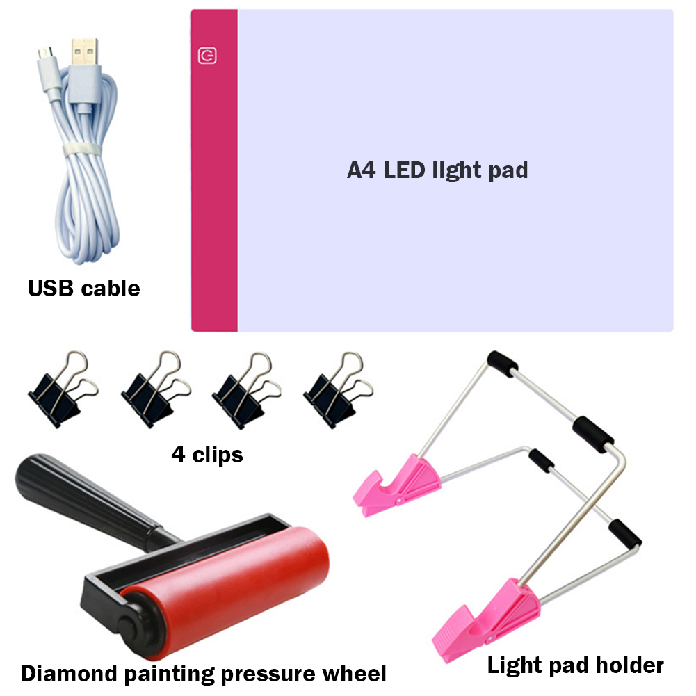 Diamond Painting A4 LED Light Pad LED Drawing Board Copy Board Tools (Pink)