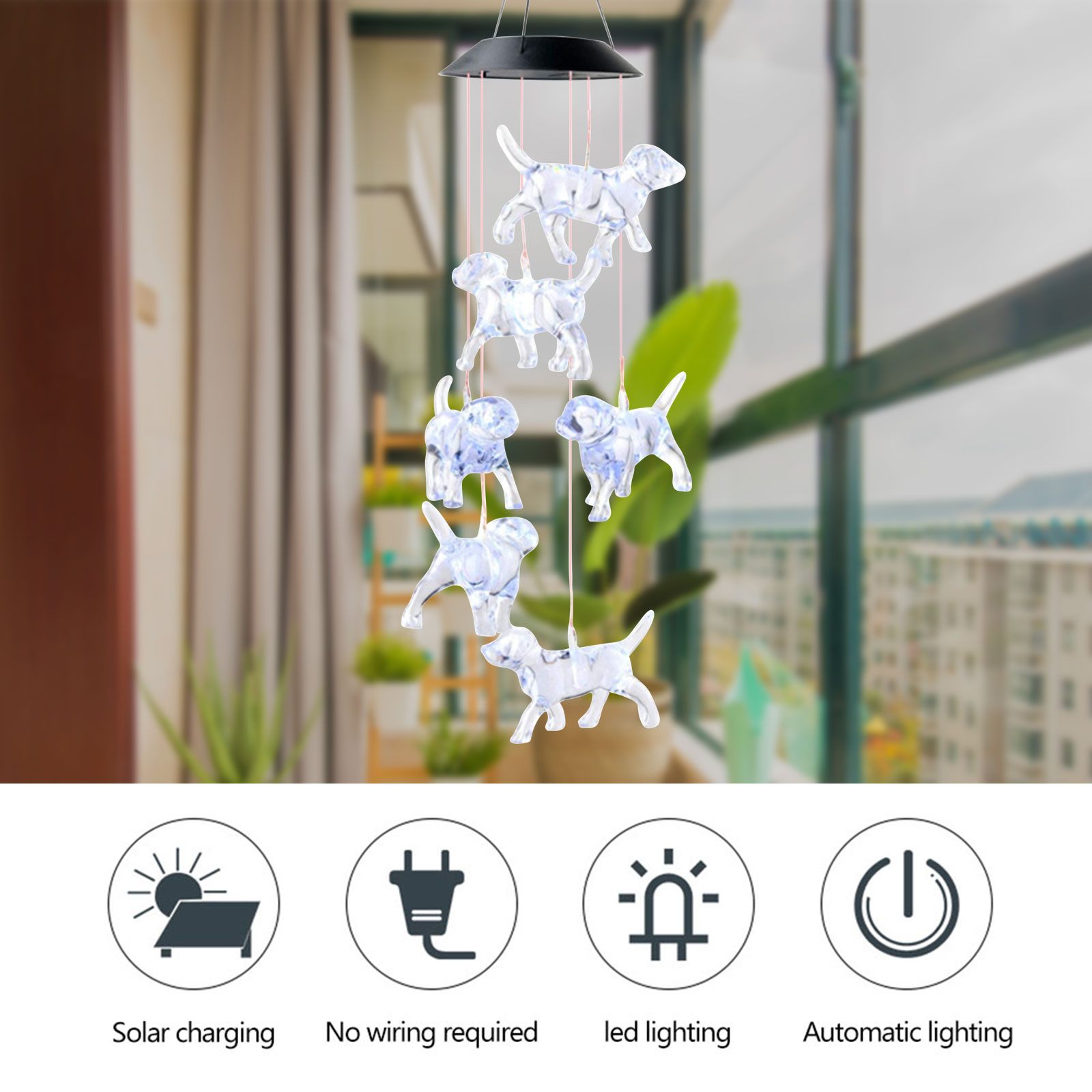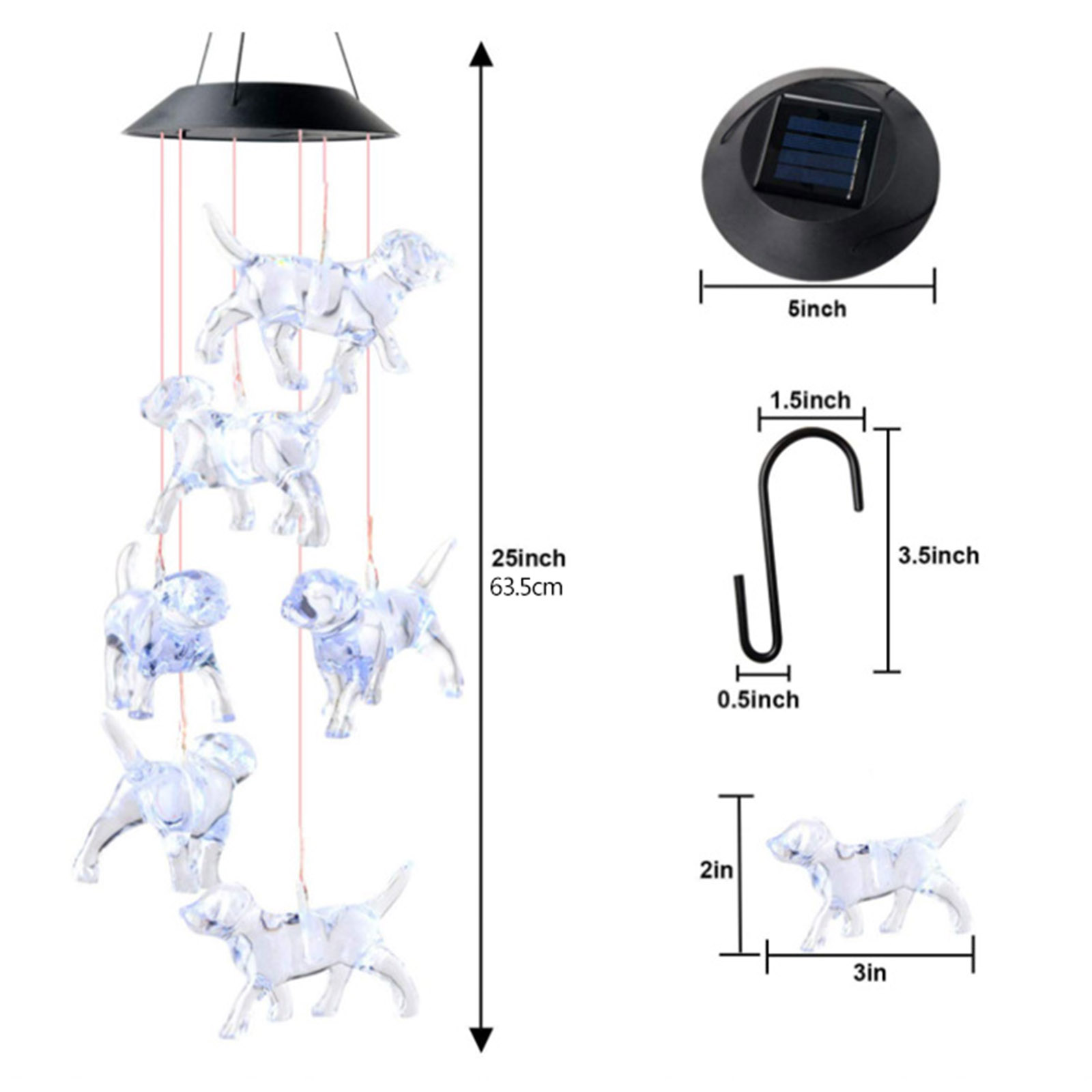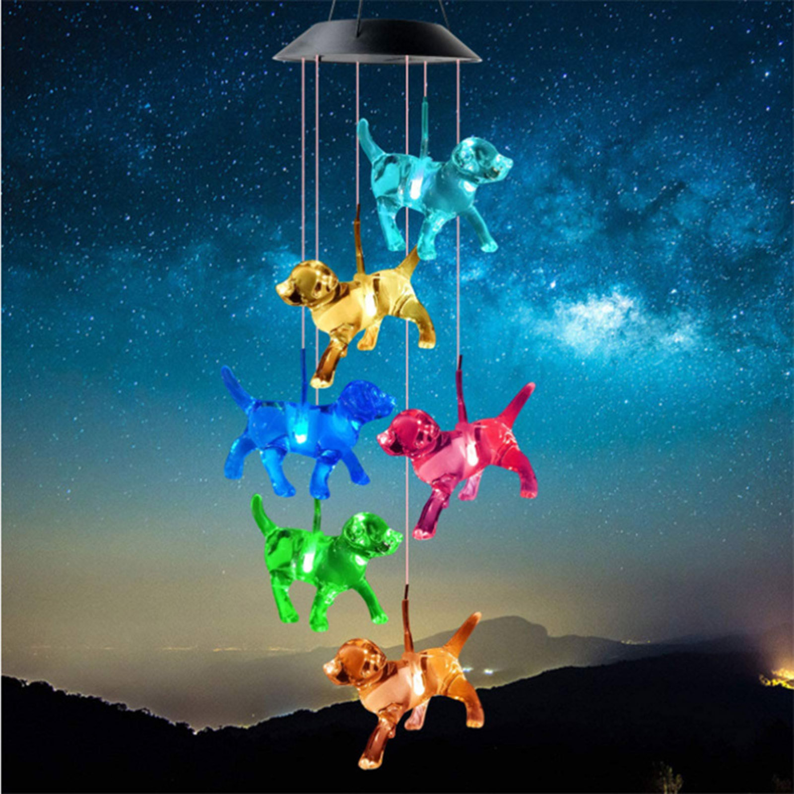 LED Solar Wind Chimes Color Changing Dog Hanging Decor for Yard Garden