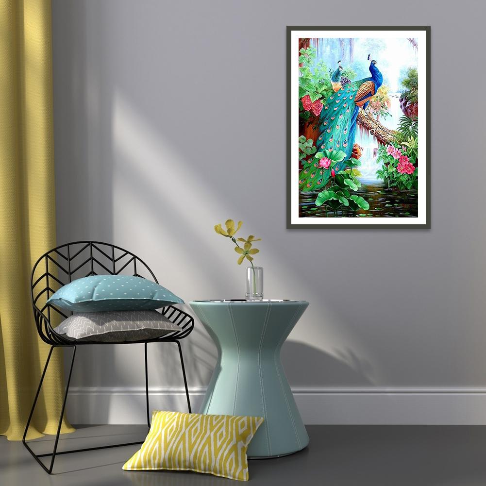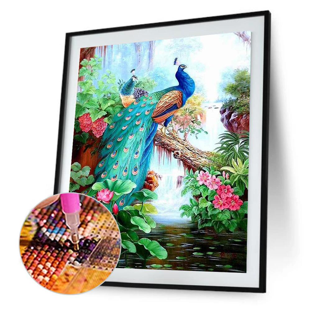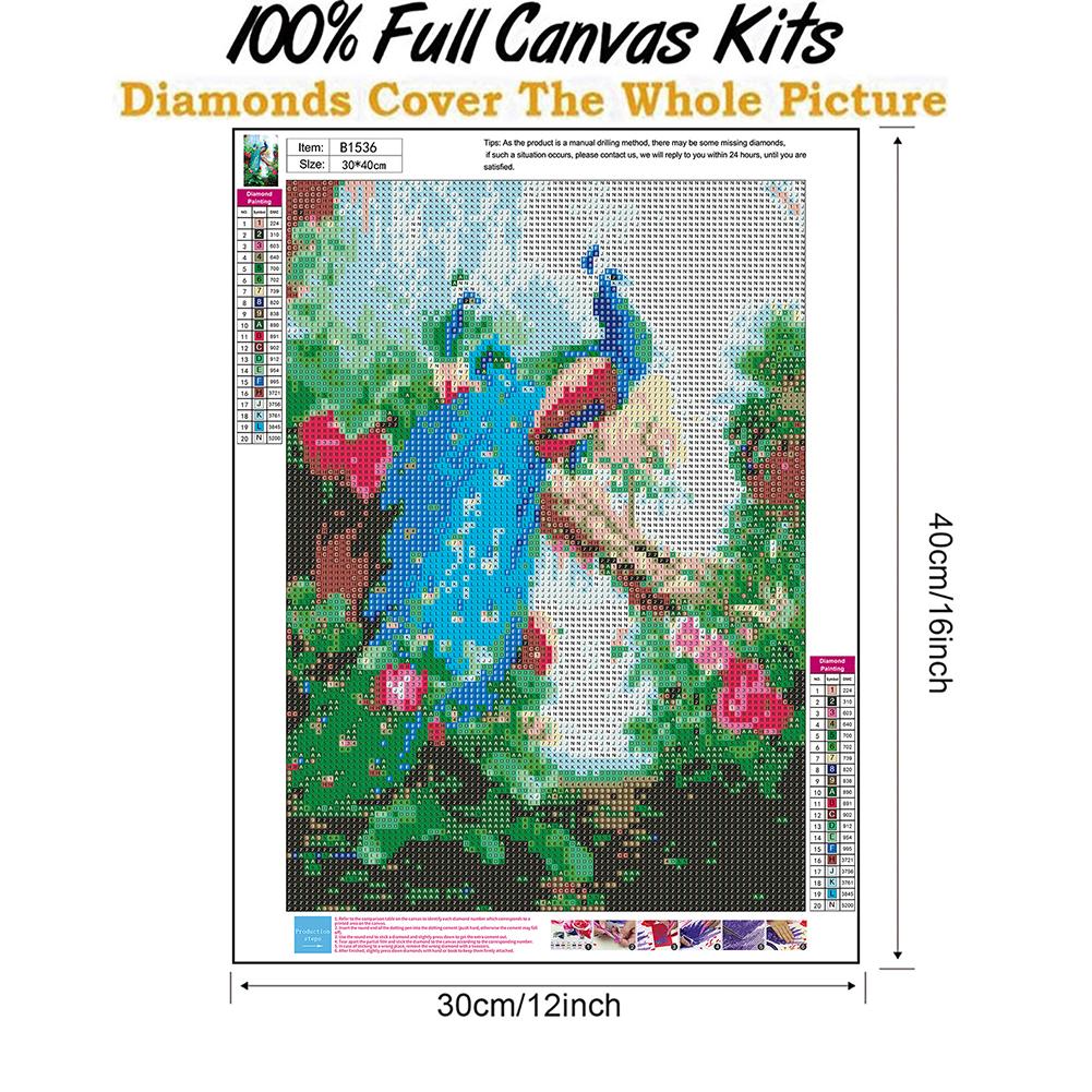 5D DIY Full Round Drill Diamond Painting Lordly Peafowl Cross Stitch Embroidery Mosaic Craft Needlework Set Home Decoration