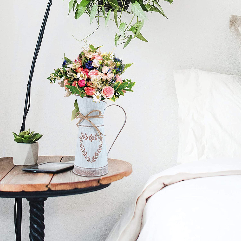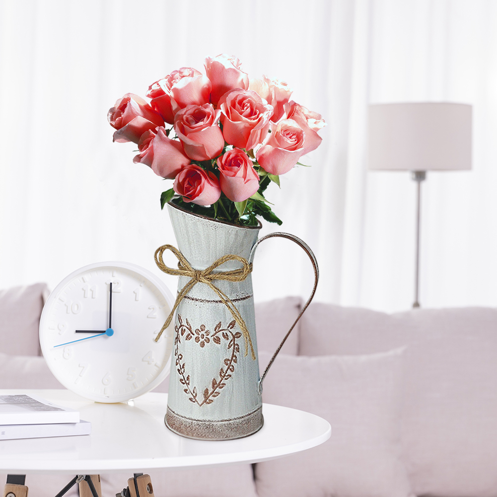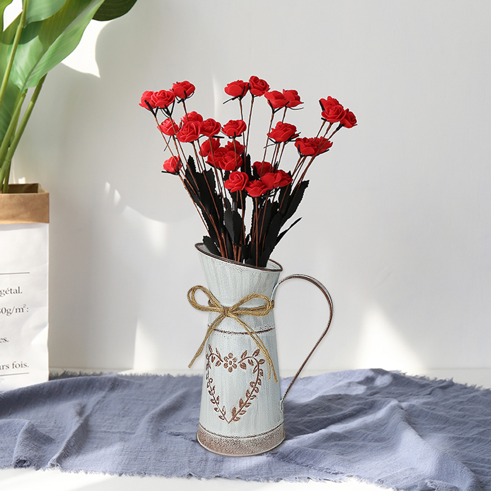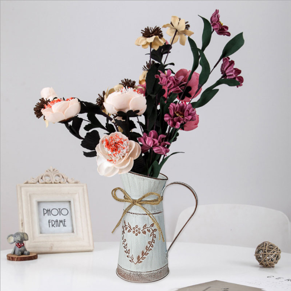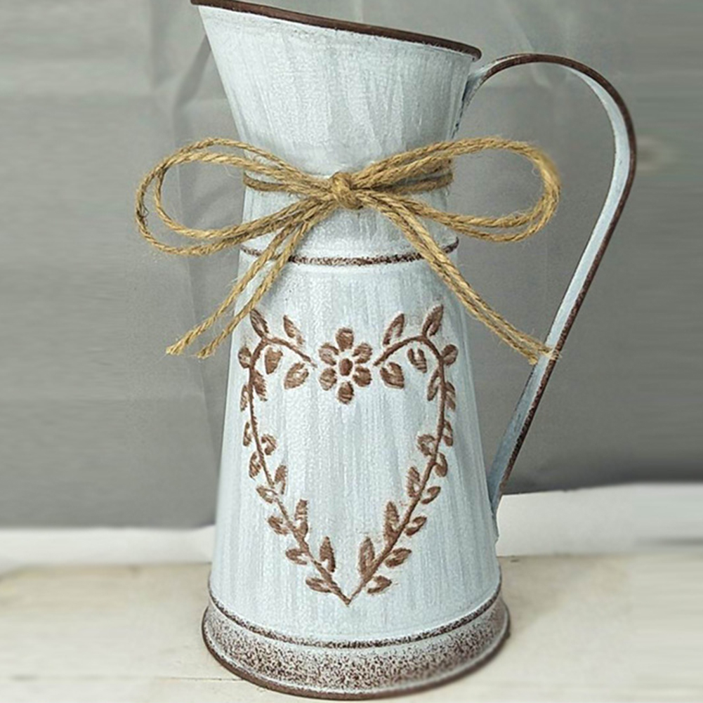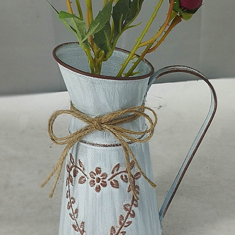 Rustic Desktop Metal Flower Vase Garden Watering Kettle Pot Home Wedding Dried Flowers Bucket Holder Shabby Chic Country Style Vintage Can Container Craft