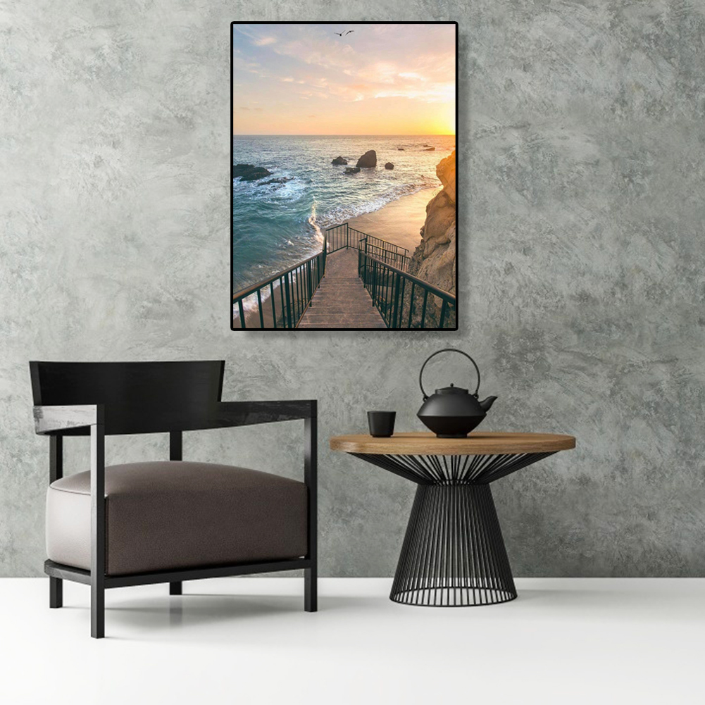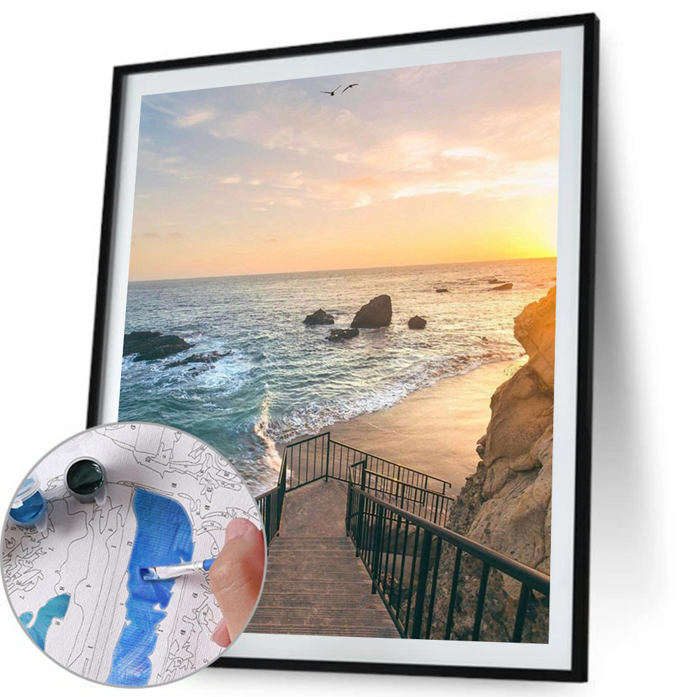 Painting By Numbers Kit DIY Seaside Steps Hand Painted Canvas Oil Art Picture Craft Home Wall Decor