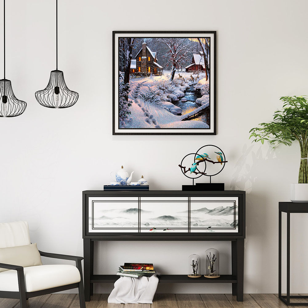30x30cm 5D DIY Full Drill Round Diamond Painting Snow House Diamond Embroidery Mosaic Kit Home Decor Bead Art DIY Gift