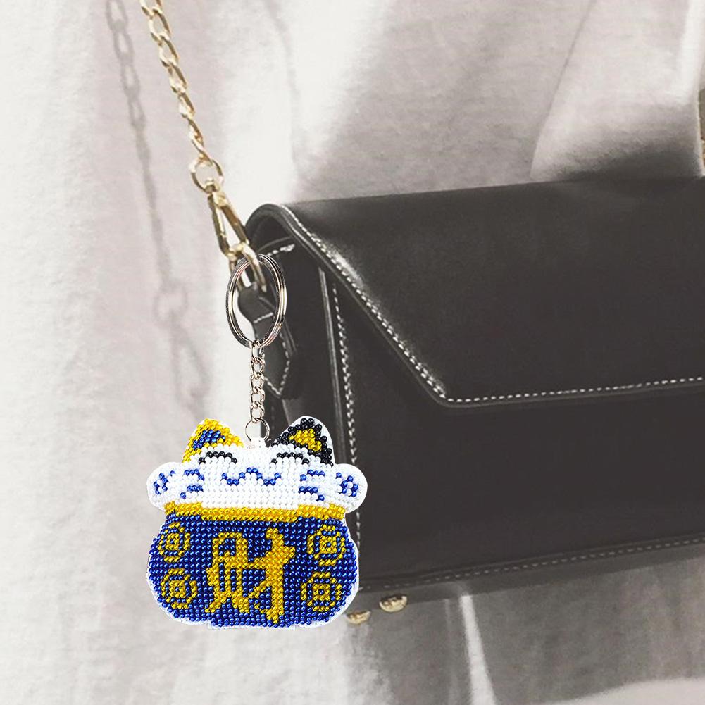 Fortune Cat Embroidery Full Beaded Pendant Durable DIY Craft Accessories Cross Stitch Kit Needlework Backpack Key Chain Beadwork